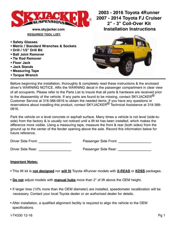 3in.C/O KT 03-23 4RUN M95MONO