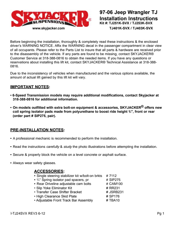 Suspension Lift Component Box contains of premium quality parts needed to complement the lift provided by your Skyjacker Suspension Lift kits.